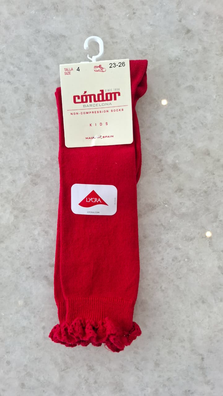 Calcetines altos punto liso con puntilla en puño